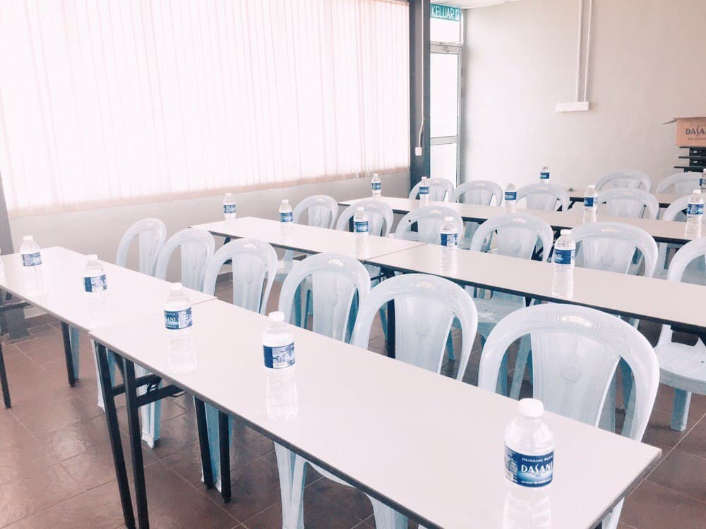 Cari bilik seminar di Kuantan yang senang setup? Di sini, semua dah siap: kerusi & meja tersusun, aircond sejuk, projector jelas, dan parking mudah.