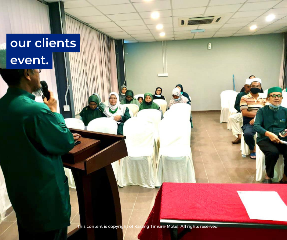 Tempah bilik selesa terus di Karang Timur Hotel supaya peserta & penceramah dapat rehat optimum sepanjang program.